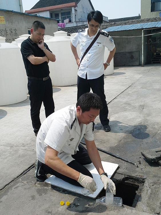 执法人员兵分两路,一路隐蔽在厂区大门外,一路蹲守在污水排放口。不分昼夜,轮班换岗,日夜蹲守,7月14日早晨工厂终于开工了。